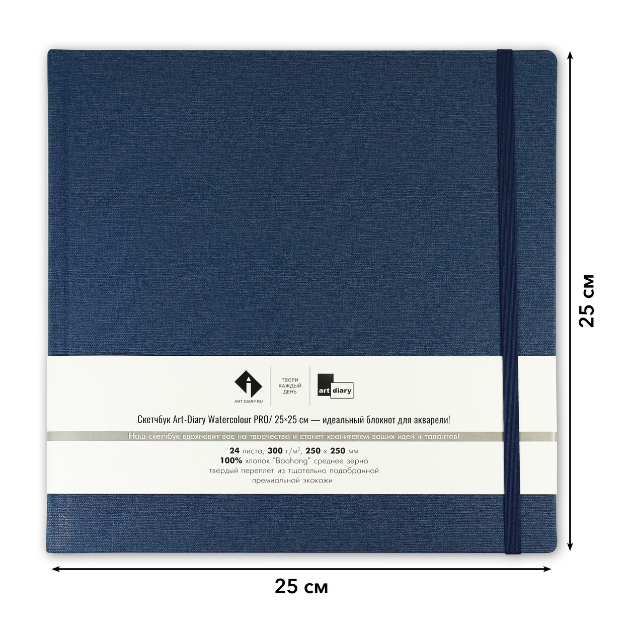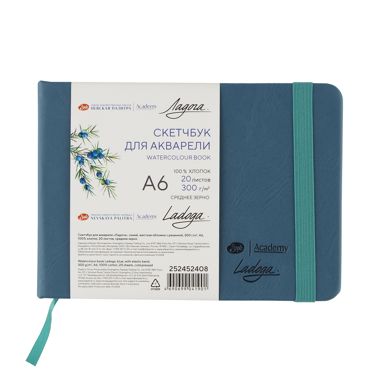 Скетчбук для акварели ЛАДОГА 300г/кв.м (А4) 210х297мм 20л. синий среднее зерно хлопок 100%