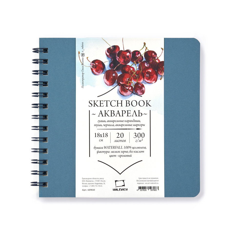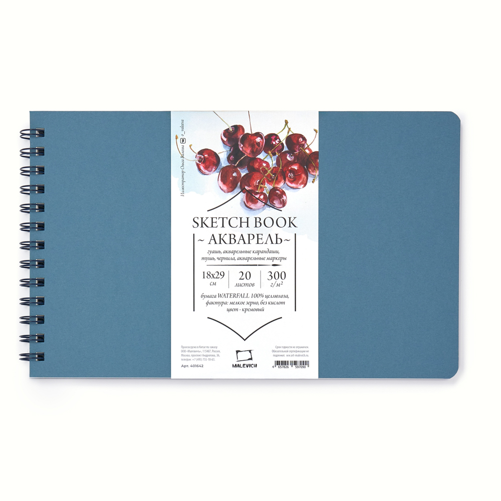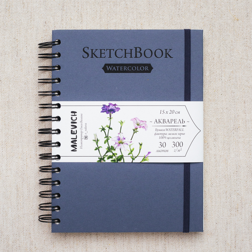 Скетчбук для акварели ЛАДОГА 300г/кв.м (А5) 148х210мм 20л. синий среднее зерно хлопок 100%