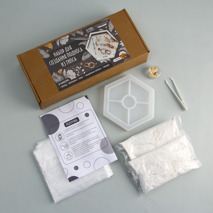 Набор для творчества TREND ART поднос из гипса 10,5х12см с поталью шестиугольник