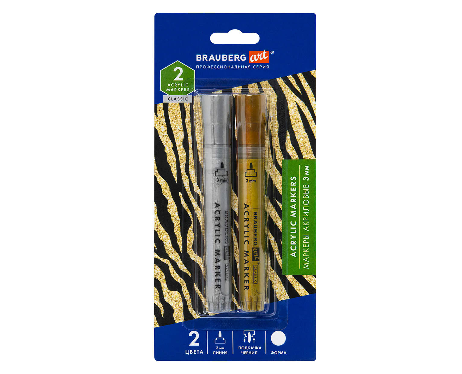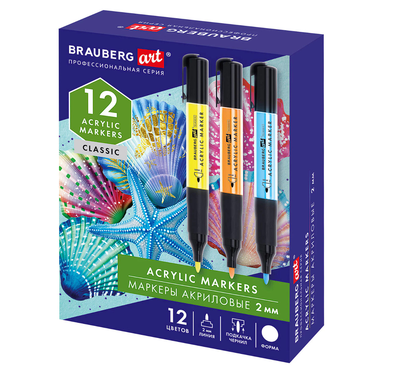 Набор маркеров акриловых СОНЕТ два пера основные цвета 10цв. кисть/пуля блистер