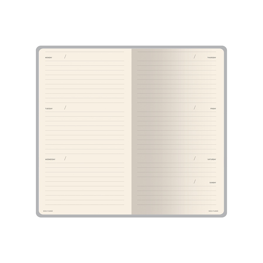 Недатированный еженедельник для планирования рабочего времени, ведения записей. Твердая обложка изготовлена из искусственной кожи.