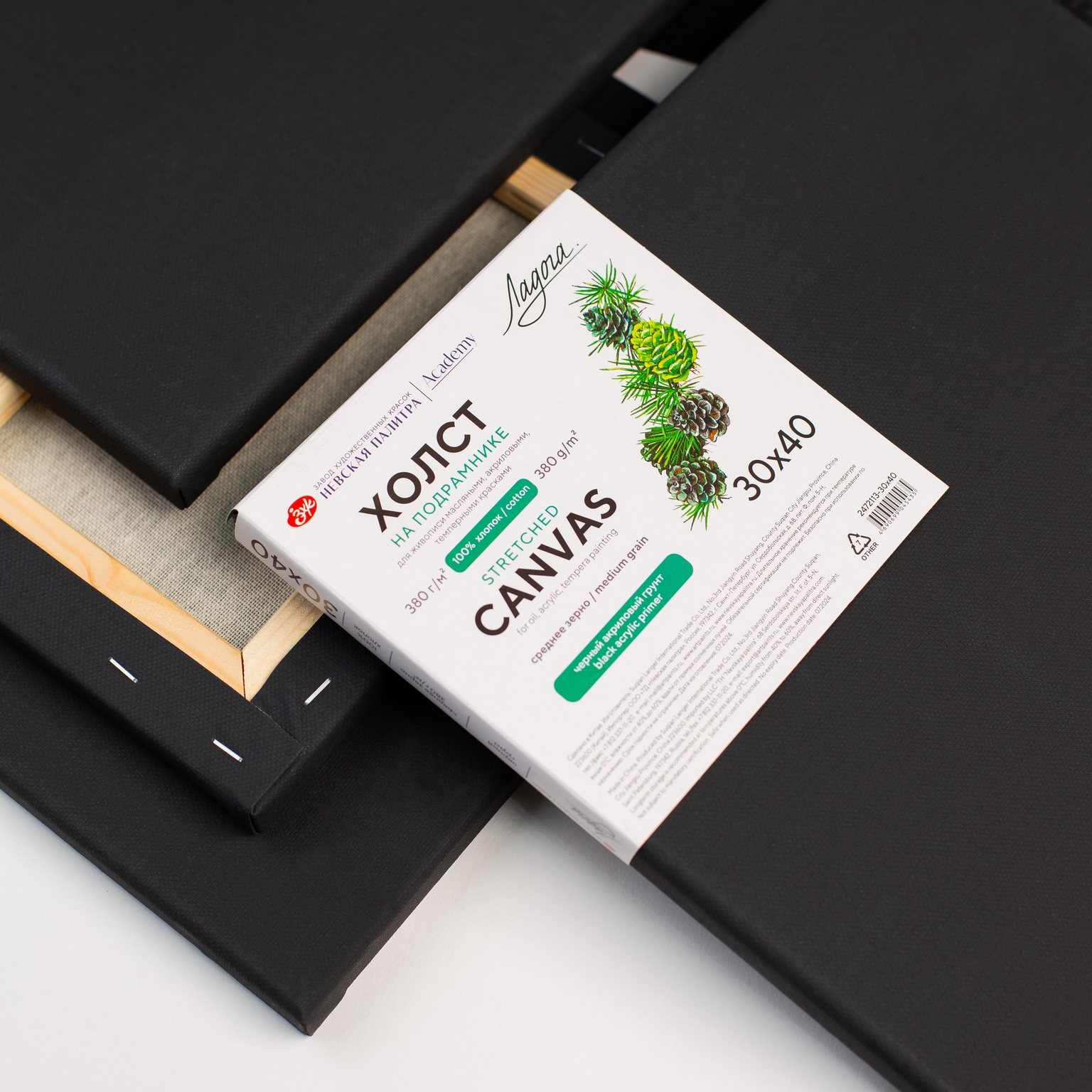 Холст грунтованный на подрамнике Ладога с черным акриловым грунтом и средним зерном — идеальный выбор для художников, стремящихся к созданию вырази...