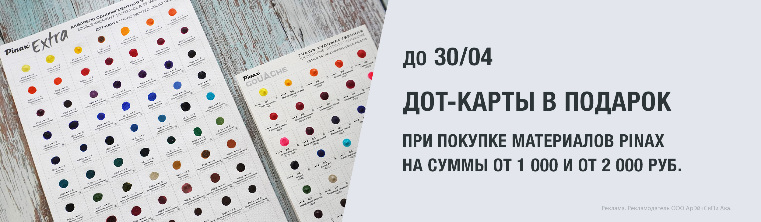 dot-карту гуаши при покупке товаров Pinax на сумму от 1000 рублей